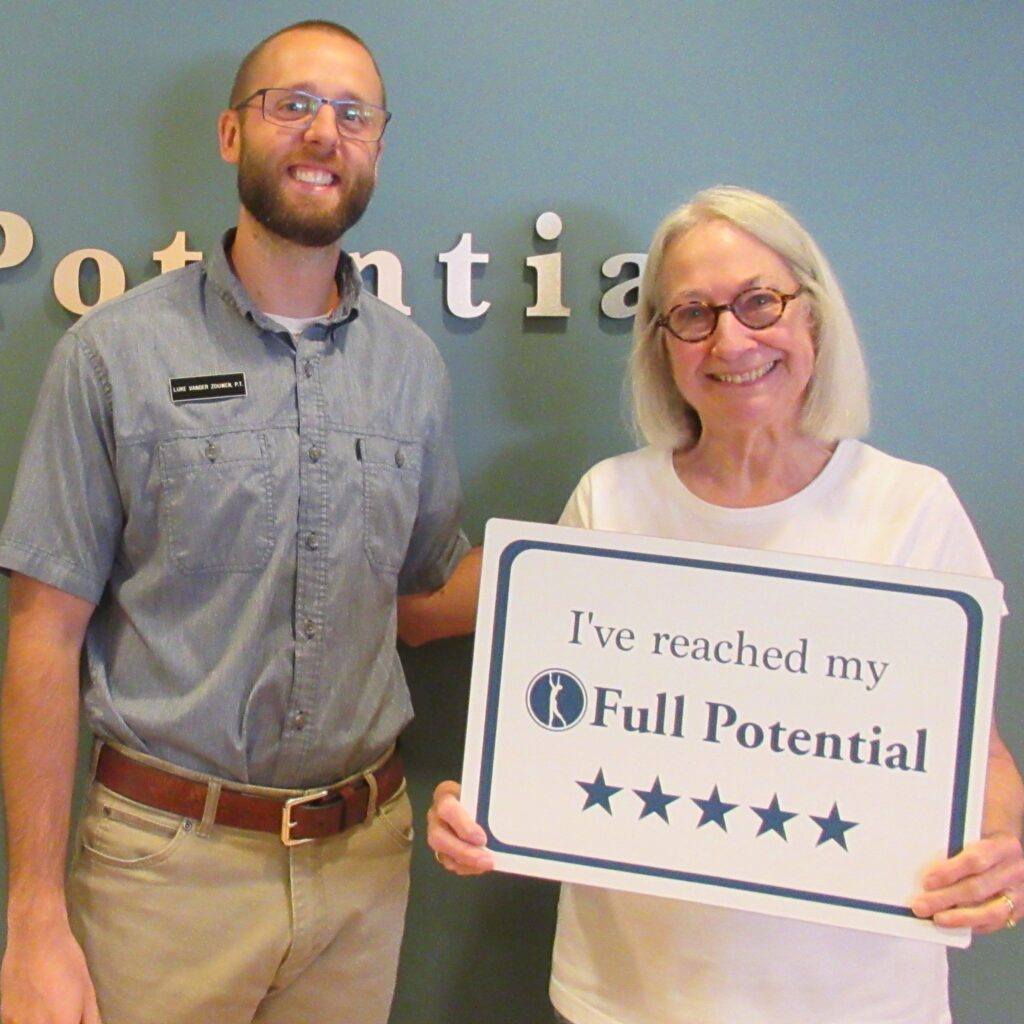 The challenge in the aging process is knowing how to elongate the sustainment phase of human beings’ cycle of action and avoid the premature onset of decline. More and more people are recognizing that our health is the new wealth in living and Full Potential PT is ready to be your partner in maximizing this unique chapter of your life. Our month for acknowledging physical therapy may be in October but we are your resource all year long. All you need to do is call and discuss your problem and step one to your solution has begun.